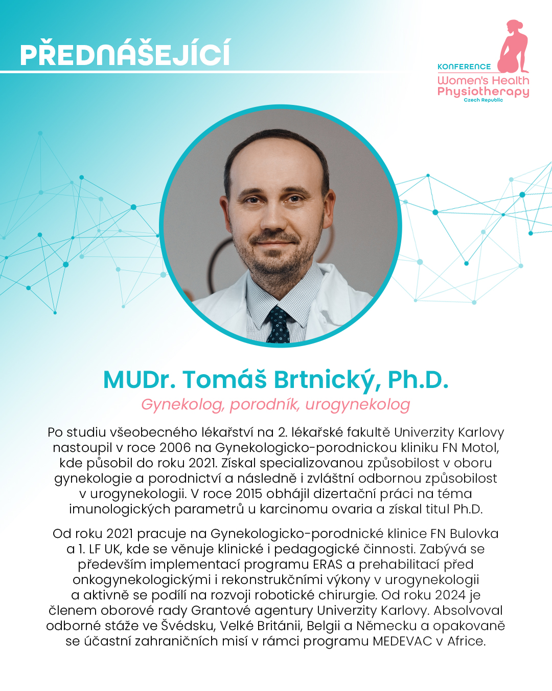 - 9:10–9:25 Onkogynekologická onemocnění a jejich příznaky, co nepřehlédnout v praxi fyzioterapeuta?